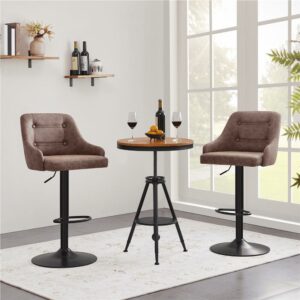 $146.19Original price was: $146.19.$120.40Current price is: $120.40.Need a rustic industrial bar stool for your kitchen island or dining room? This bar stool may be ideal for you. Crafted with solid pinewood and powder-coated metal, the stool is strong and long-lasting for kitchens, dining rooms, home bars, restaurants, etc. It weighs 13.2lb but can hold up to 300lb. The stool with an adjustable height ranging from 20-27″ is perfect for a 34″- 40″countertop, serving you well from breakfasts to midnight drinks. The double-ring footrest not only provides an extra degree for holding your legs but also enhances stability that helps secure the stool legs. With a modern farmhouse/industrial style and unique appearance, the round bar stool can match your existing house furniture effortlessly. No installation is required.