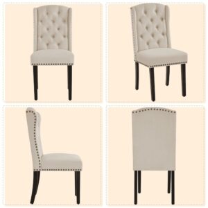 Alden Design 2pcs Upholstered Tufted Dining Chairs with Wing Design for Kitchen, Beige