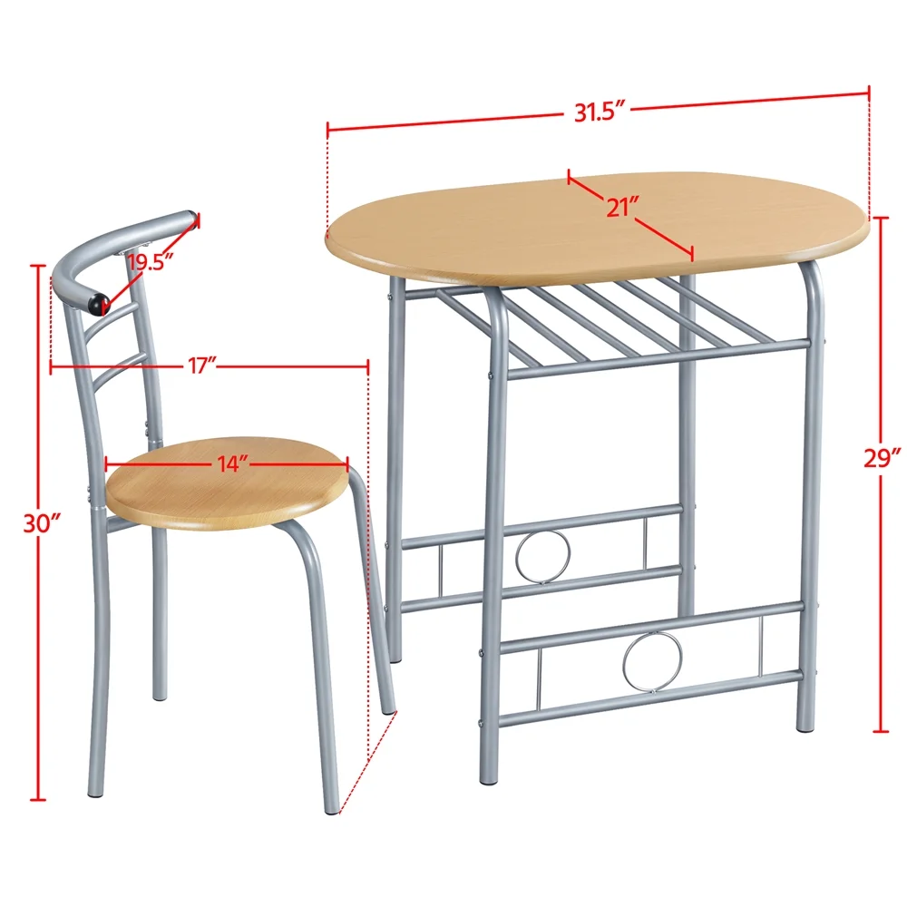 $64.72This 3-piece dining table set includes 2 chairs with a mid-height backrest and round wooden seat, which are comfortable to sit in during the break.Create a cozy dining area with this practical dining table set. This set is made of premium MDF boards and a metal tube structure, which is sturdy enough for years of use. Featuring a waterproof tabletop and powder-coated steel legs, the daily maintenance will be super easy. With 2 chairs, you can enjoy coffee or breakfast alone, or with your lover or friends pleasantly. When the chairs are pushed in, this dining set only takes up very little room, which is perfect for small spaces. Showcasing curved lines and round edges, this set gives you a relaxed and inviting feeling. The lightweight design makes this set easy to move around for your changing needs. It could perfectly fit into a small kitchen, dorm room, apartment or a corner of your house to create a cozy dining area or relaxing place.