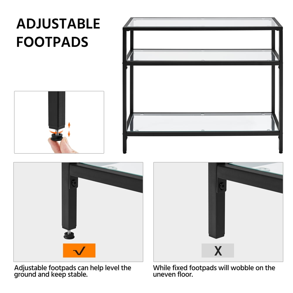 Alden Design 3-layer Modern Tempered Glass Console Table with Shelves for Living Room, Black