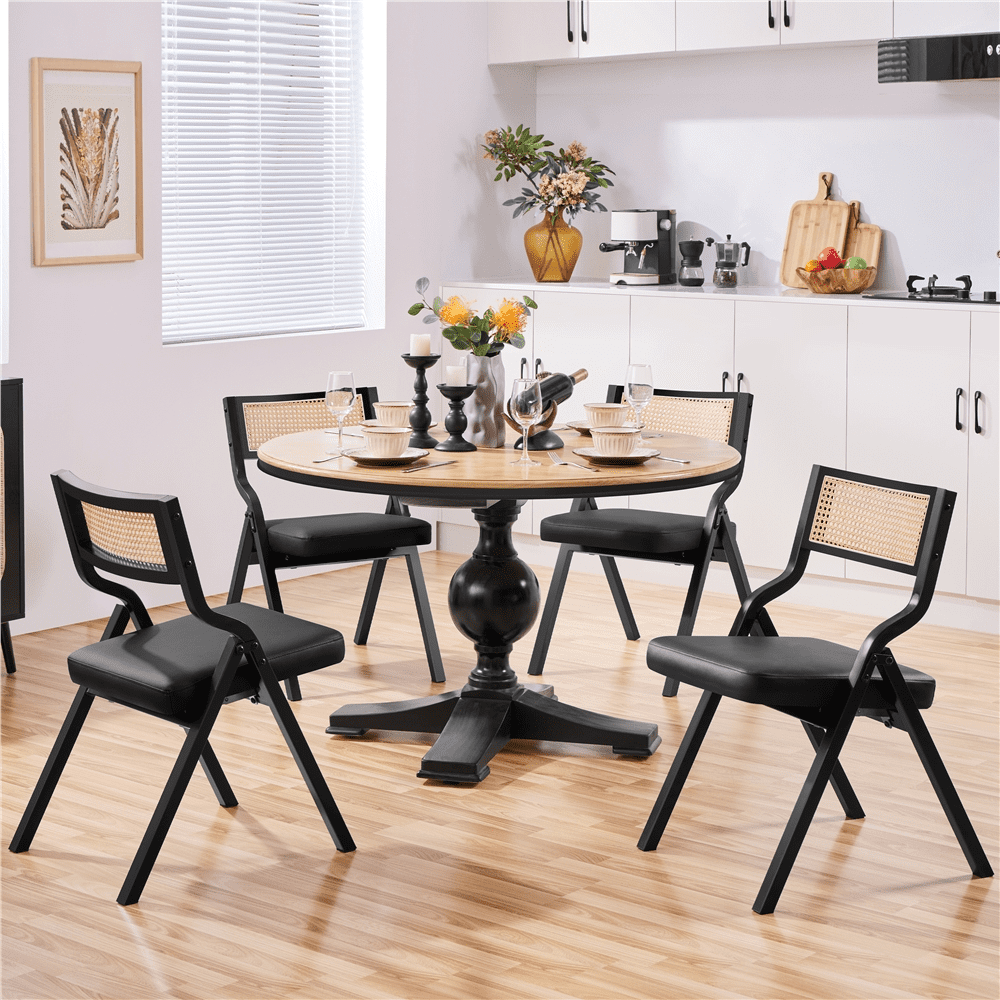 Alden Design 2pcs Foldable Faux Leather Dining Chair for Dining Room, Black