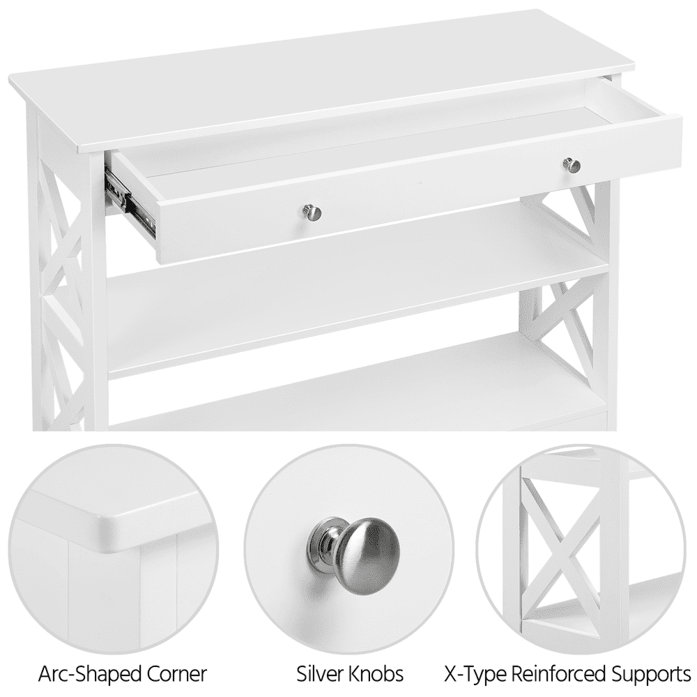 Alden Design 3-Tier X-Design Wood Console Table with Storage Drawer, White