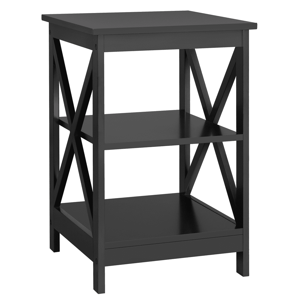Alden Design 3 Tier X Design Wooden Nightstand End Table for Bedroom Living Room, Black