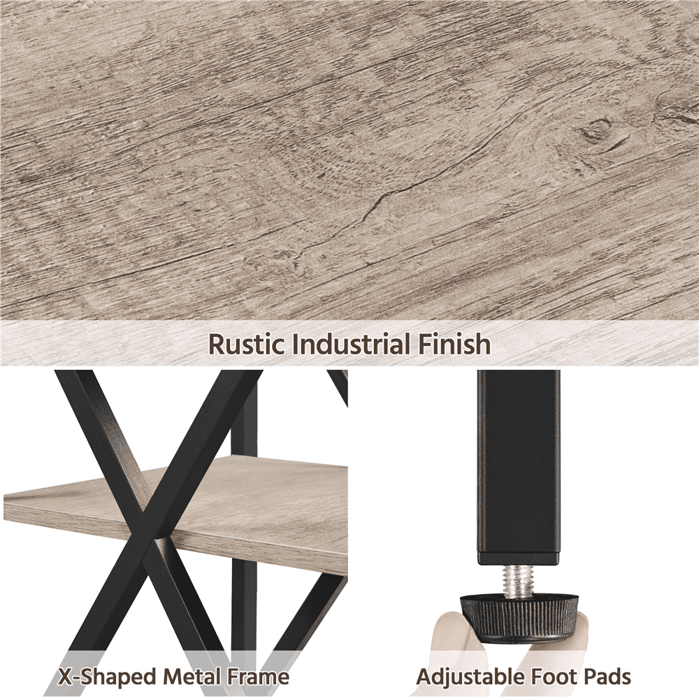 $42.34This industrial X-design end table by River Street Designs is the perfect piece for your living room. The sturdy, high quality metal frame and durable wood shelves guarantee that this end table will last a long time. The 3-tiers offer ample storage space to organize living room clutter or display decor. The elegant, sleek design blends in perfectly with any and all home decor. This is the perfect accent piece for your living room, bedroom, den, or home office! Simple assembly is required and detailed instructions are included.
