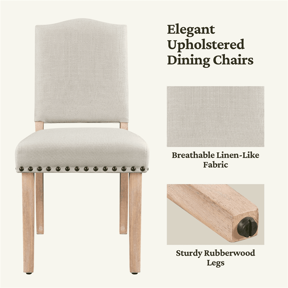 $120.39Are you looking for an elegant dining room chair set for your dining room? Look at these 2pcs kitchen chairs. Based on Parsons-style design, the 2pcs upholstered dining chairs adopt simple design and sleek lines, easily suited for nearly all home décor styles. You can place them in the kitchen, dining room, living room, café, etc. Furthermore, the fabric chair comes with a slightly arched top and shows bronze-finish studs on the edge for a classic look. Foam-padded backrest and cushion provide a smooth sitting experience. Solid rubberwood legs offer strong support for holding up to 300lb. These pack of 2 dining chairs provide endless accessibility and can quite flawlessly bring together the décor in the home.
