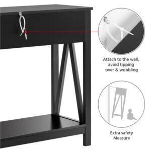Alden Design 31.5″ H Wooden Console Table with Storage Drawer for Entryway Living Room, Black