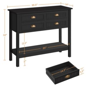 Alden Design 4-Drawer Wooden Console Table with an Open Shelf for Entryway, Black