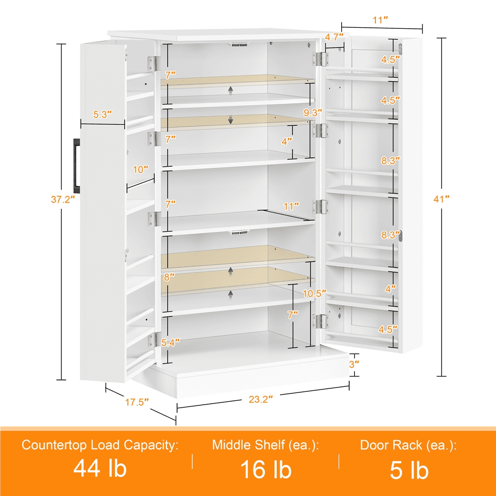 Alden Design 41″H Kitchen Pantry Storage Cabinet with Doors and Adjustable Shelves for Kitchen, White