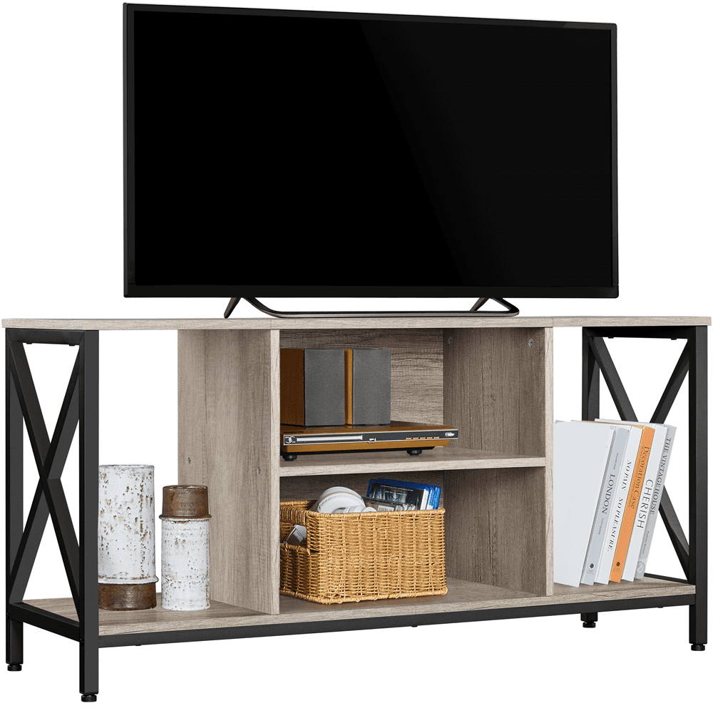 $77.39Original price was: $77.39.$55.04Current price is: $55.04.With stylish design and function harmoniously blended, this industrial TV console table can serve as a tasteful addition to your house and provide ample storage space to meet your storage needs. Crafted from powder-coated metal and engineered wood, combined with a matte metal framework, this media entertainment center features vintage and industrial elements, allowing it to well integrate into various room decors. The 47″ long 16″ wide tabletop provides ample space for a 55-inch TV, and the 4 open storage compartments provide enough space for storing your items like CDs and game collections. Besides, with a whole set of the required components, hardware and detailed instructions, assembly turns out to be pretty simple.