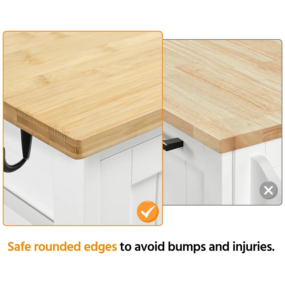 $134.15Original price was: $134.15.$110.08Current price is: $110.08.Kitchen trolley carts offer extra space for meal preparation which is of great significance for small kitchens. This 84.5cm/33” H utility kitchen cart is mainly made from CARB P2-compliant MDF and durable bamboo, which boasts durability and can totally hold up to 75kg/165lb. It consists of a bamboo top, three utility drawers and three removable shelves which provide ample room for storing a variety of everyday essentials. Stands on four universal wheels (2 with brakes), this rolling kitchen island boasts super convenient and effortless maneuverability and can lock into place if needed. Besides, due to the neutral color and classic design, the cart will not only help you finish the kitchen decluttering work but also add a touch of elegance to your home. Best of all, the first tray with built-in side handles can be removed easily and then converted to a small-sized serving tray or breakfast tray. This mobile kitchen island is absolutely a good choice for collecting pantry items without the clutter of your kitchen.