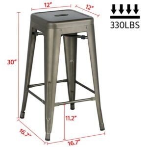Alden Design Industrial Metal 30″ Stackable Backless Bar Height Stools Set of 4, Gunmetal Gray