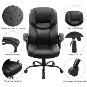Alden Design Faux Leather Swivel Office Chair with Ergonomic High Back for Home Office, Black