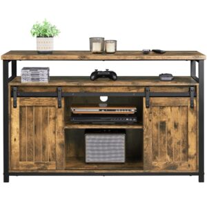 Alden Design Industrial TV Cabinet for 55-inch TV with Sliding Barn Doors, Rustic Brown
