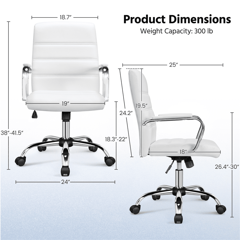 $103.19Original price was: $103.19.$68.79Current price is: $68.79.A desk chair like this is an ideal option for getting a comfy sitting experience, while also introducing an on-trend contemporary look. We apply quality PU leather upholstered fire retardant foam cushioning for the seat and back, and corrosion-resistant chrome-plated steel for the arm and star base. Twisting and turning about is integral within the office and the best optimal desk use. The 360 degree swivel seat and wheels of this mid-back office chair ensure the must-have mobility. And with the tilt-lock mechanism and seat height adjustment, you can customize your seat to your preference.