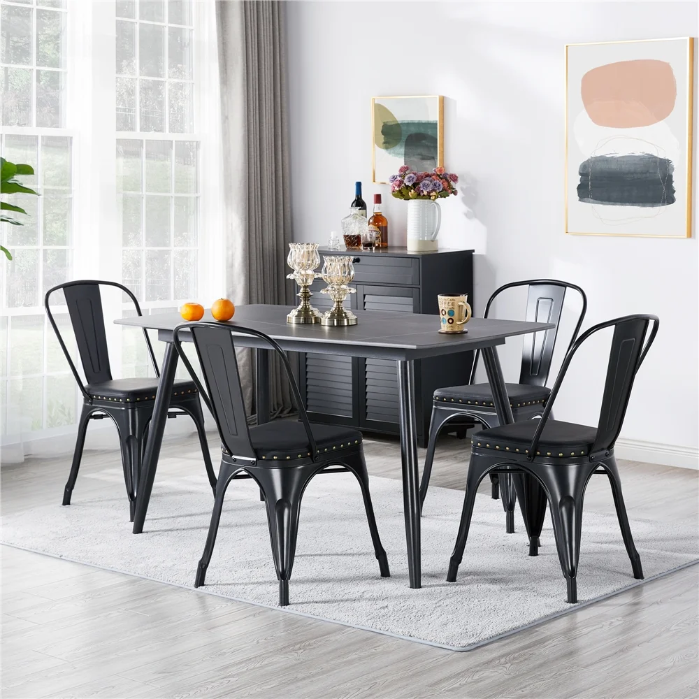 $154.79Our dining chairs feature fashion punk style and full black color with matt finish. The metal frame matches leather upholstered seat with riveted sides. These fashion dining chairs are durable, fully-sealed, and fabulous. To improve comfort, we adopt upholstered seat and ergonomic backrest so that you feel comfortable and relaxed when you sit on the chair. The quality materials and strong structure make sure the dining chairs will work well for a long time. Full black color and rivet-side decoration, this set of stylish chairs will bring a much unique charm to your house. Sold in 4 pieces with good value, come and take them home!