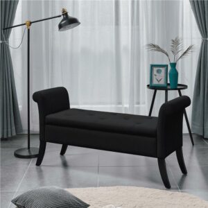 Alden Design Modern Fabric Tufted Storage Bench with Rolled Arms for Home, Black