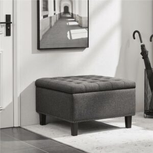 Alden Design Modern Linen-like Storage Ottoman Bench with Button-Tufted for Entryway, Dark Gray