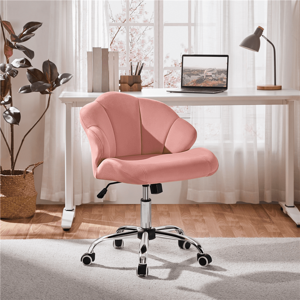 $76.53This modern velvet desk chair definitely won’t disappoint. The silky velvet-look fabric and soft foam make sitting in this task chair super comfy. Plus, the heavy-duty chrome-plated metal base and five multi-directional casters make it easy to move around while you work. With an SGS-certified pneumatic cylinder, you can easily adjust the seat height from 46.5-56cm/18.3-22” off the ground using the adjustment lever. The tilt tension knob lets you recline within a certain range for added comfort.