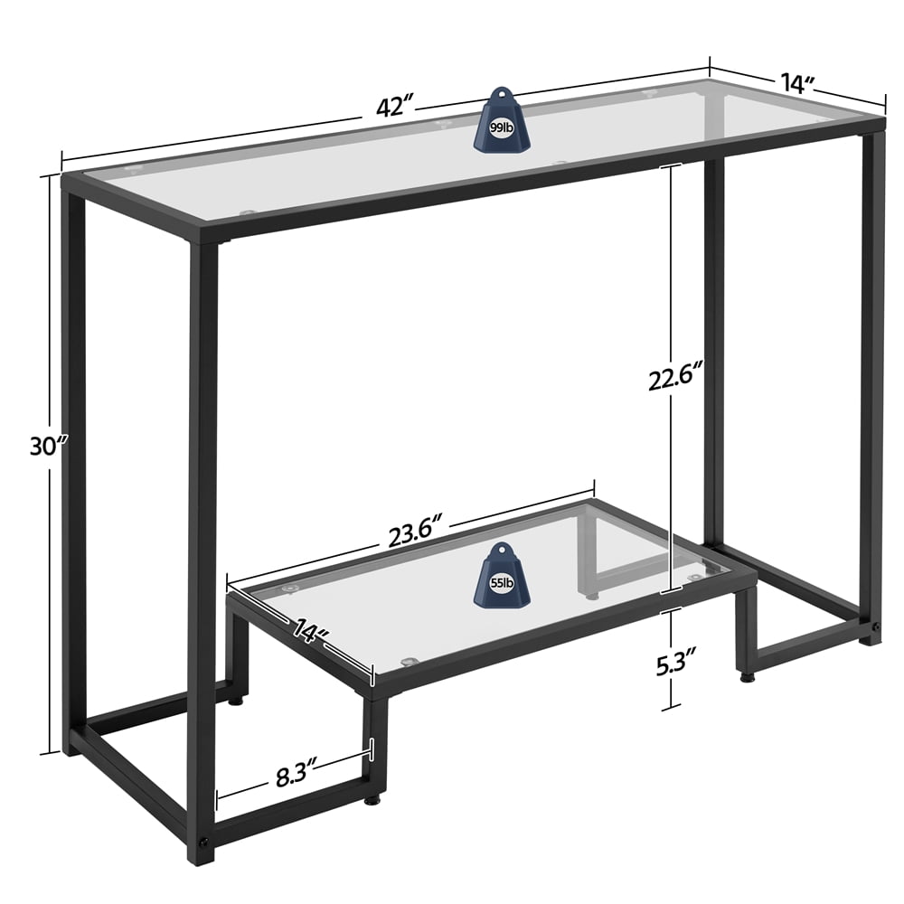 $56.75Crafted out of strong tempered glass and a protective coating covered iron, this porch table boasts great durability, stability and weight capacity. Even under the bump of your dog, it will also standstill. The multilayer structure allows it to accommodate books, magazines, and display plants and decorations. You can also apply it in your study to work as your bookshelf, in your kitchen to serve your delicate dishes or by your sofa to accommodate the stuff you need at hand. This 2-layer glass console table boasts great adaptability, which except for working as a console table, can also serve as a storage shelf and display table in your home or office, a behind couch table in your living room, a flower stand in your balcony or a modern glass table to accommodate your delicate dishes in your kitchen or dining room.