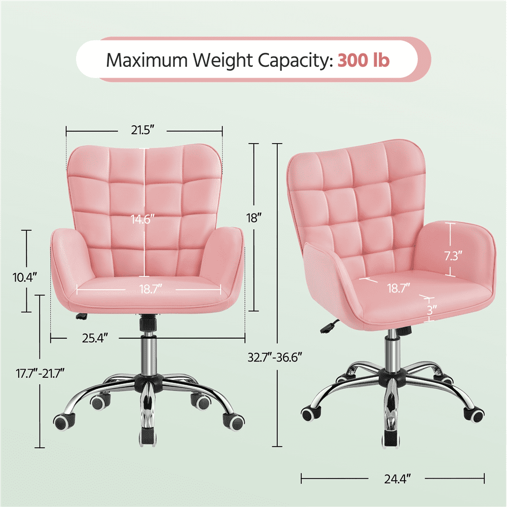 Alden Design Modern Faux Leather Desk Chair with Mid-back Padded Armrests for Office, Pink