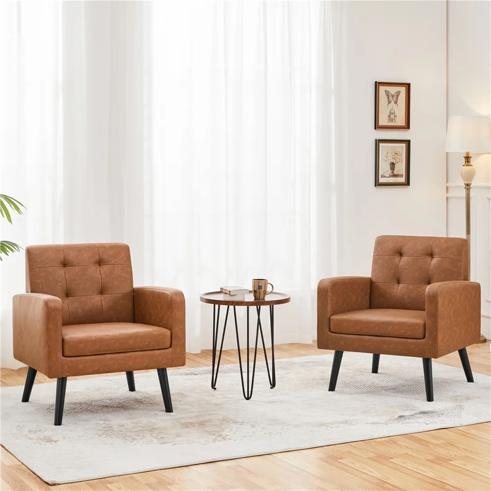 Alden Design Modern Faux Leather Tufted Accent Chair for Living Room, Retro Brown
