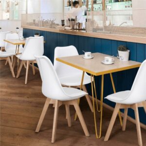 Alden Design Modern Padded Dining Chairs with Wood Legs for Dining Room, Set of 4, White