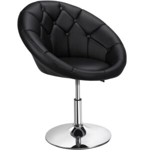 Alden Design Modern Tufted Adjustable Barrel Swivel Accent Chair, Black Faux Leather