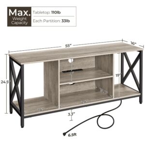 Alden Design Modern Television Stand for 60in TV with 4-AC Power Outlet, Gray