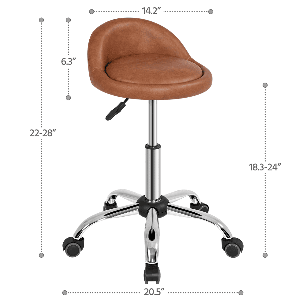 Alden Design Modern PU Leather Rolling Salon Stool with 5 Castors for Spa Massage Manicure, Brown