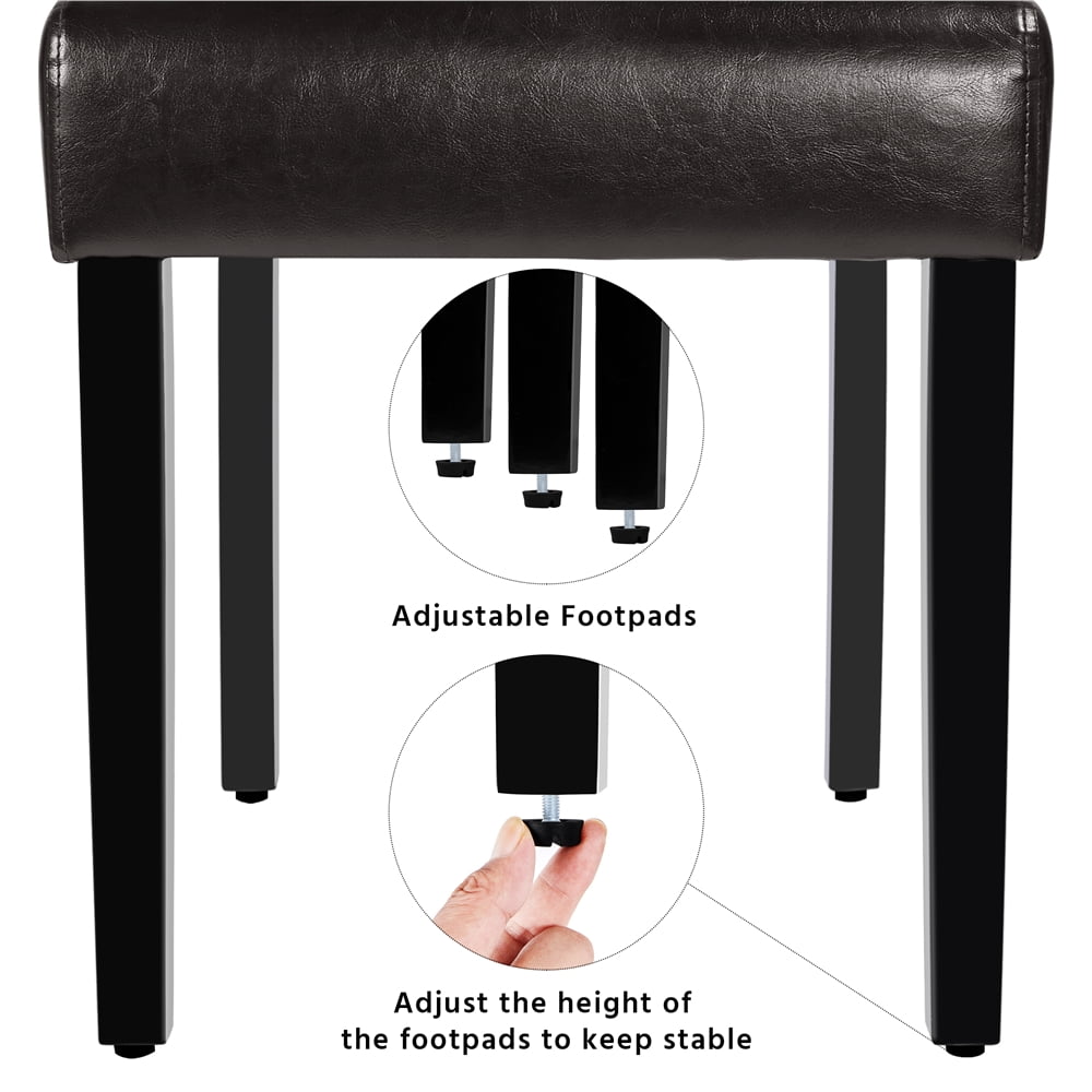 $110.08Make every long-time sitting comfortable. The dining chair is constructed with a solid wood frame, decent size seat, and tall backrest. Durable PVC leather seats filled with extra high-density foam and decorated with button tufting on the back. Simple style and elegant color perfectly fit your unique space and atmosphere. The front legs are designed with adjustable feet caps to keep the chairs height balance. We provide all the necessary hardware and tool, and an illustrated installation manual to help you set up this chair.