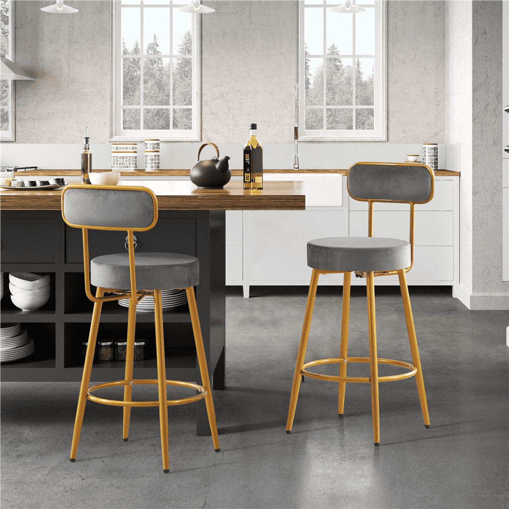 Alden Design Modern Low-Back Counter Height Velvet Bar Stools with Gold Legs, Dark Gray