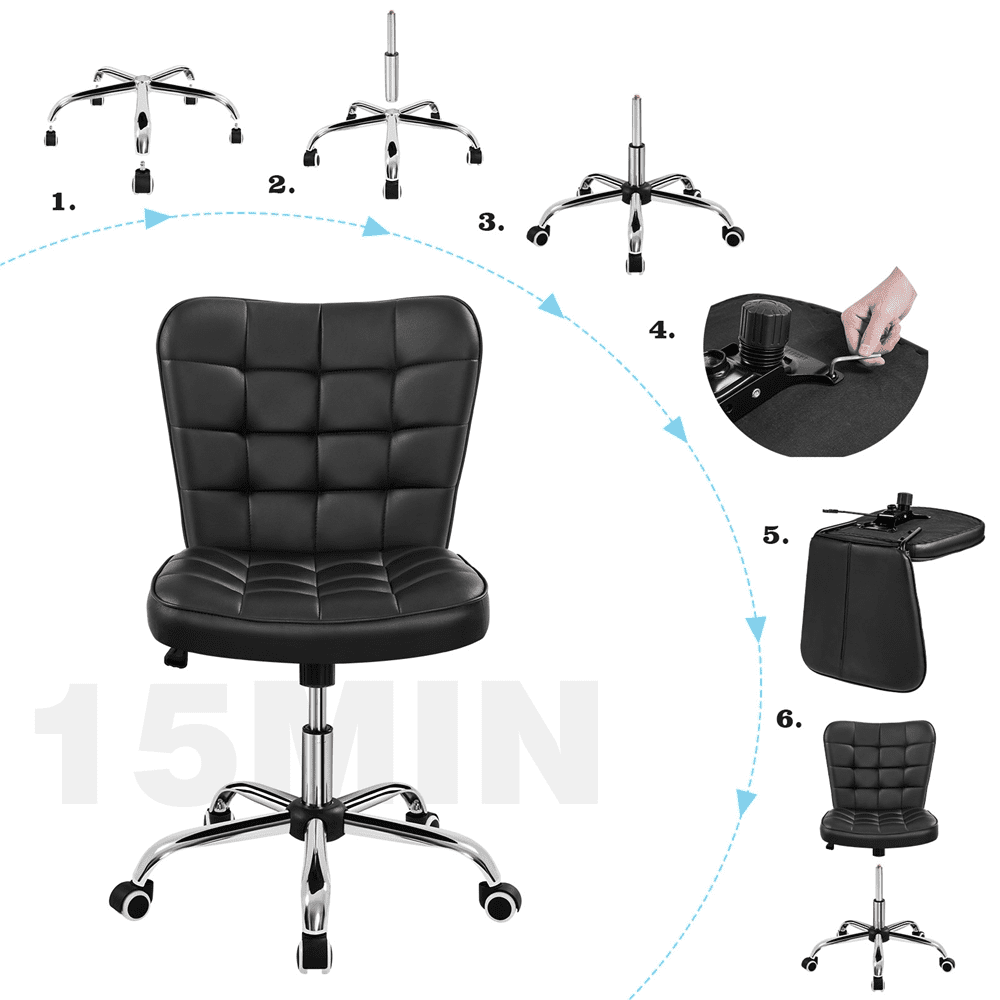 Alden Design Modern Tufted Faux Leather Home Office Armless Desk Chair, Black