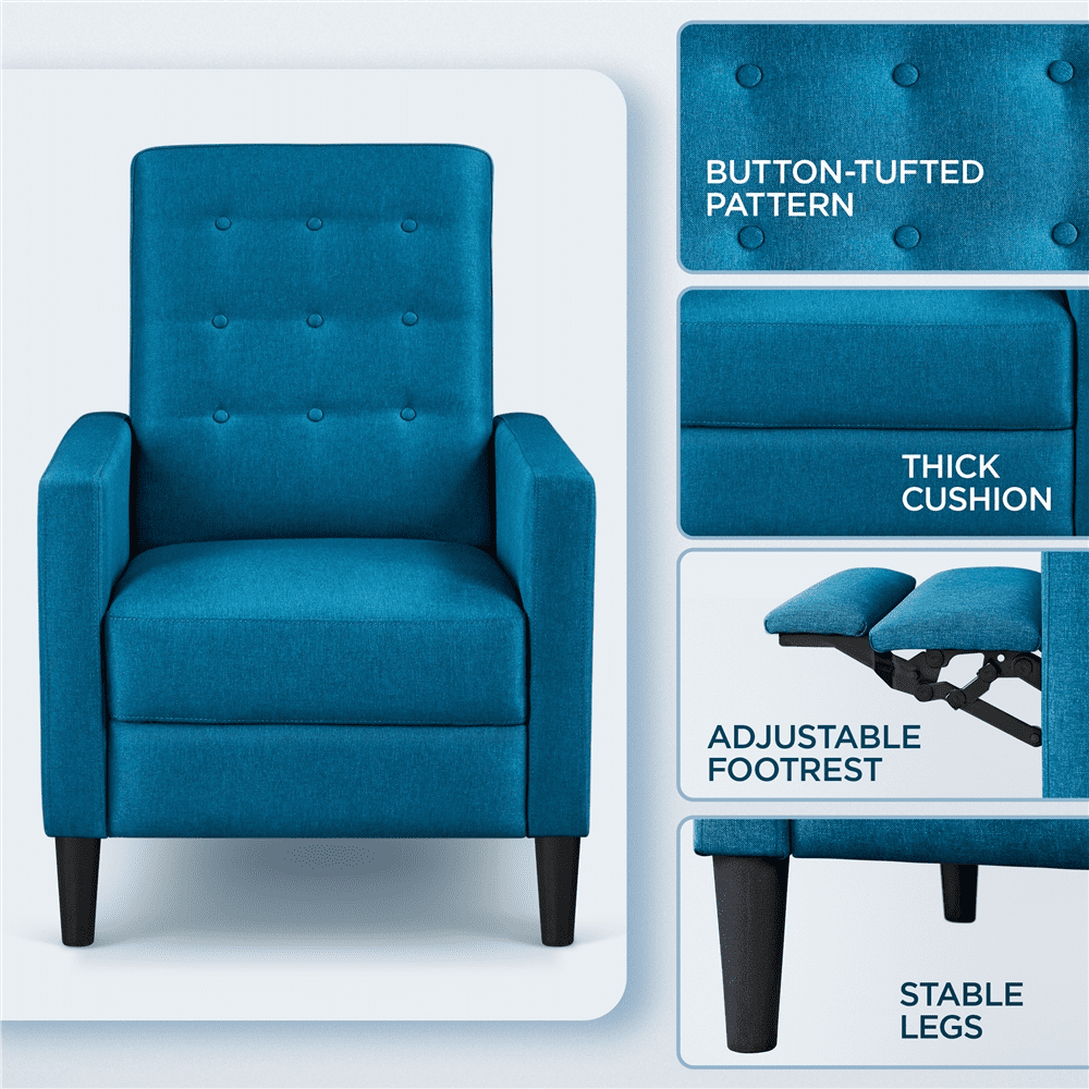 Alden Design Modern Tufted Fabric Push Back Recliner with Pocket Spring, Blue