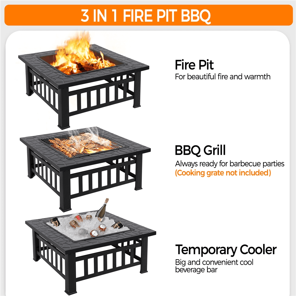 $66.21This outdoor fire pit is ideal for cold nights, providing cozy warmth, light and a beautiful, captivating, comfortable atmosphere. This premium fire pit is built in square shape for stability. The wide edge around the fire bowl provides ample space for holding plates, sauces, brushes and other barbecue supplies, allowing convenient access during cooking. This garden square fire pit comes with a mesh lid to prevent burning embers from blowing out and a poker for stoking fire and to help remove the mesh lid. Our square brazier is crafted out of high quality metal mesh and frame. Heat resistance paint coating the fire pit is excellent in rust and heat resistance offering a long service life. Also suitable for burning logs or charcoal, this square fire pit is available in matt chic color and stamped with decorative rock pattern certain to be an eye-catching piece in your yard.