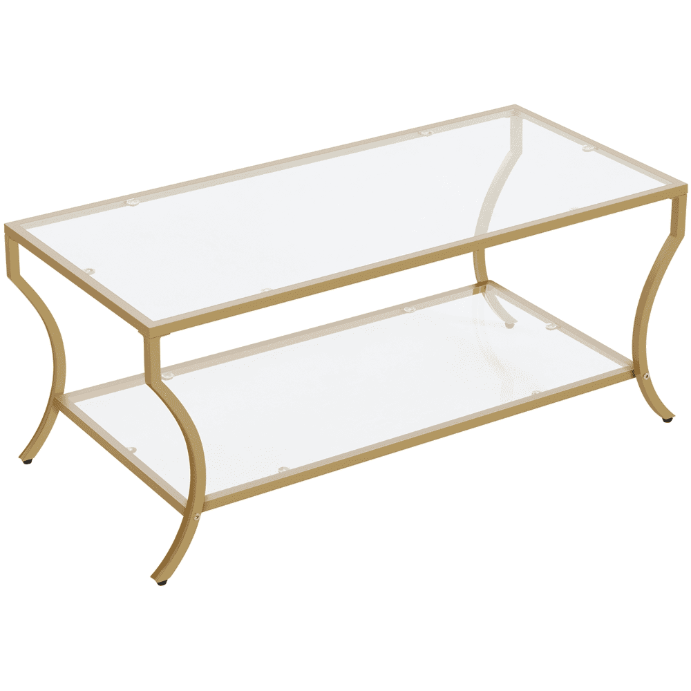 $72.03This modern coffee table comprises a wide tabletop and a lower shelf. The tabletop, measuring 42″ L × 20″ W, is spacious enough to serve as a center table in a middle or small living room. The 36.6″ L ×18.3″ W × 12.6″ H lower storage space is also practical for storing your magazines, tea candy, or anything needed. Two layers of strong tempered glass framed by robust anti-scratch and oxidation iron, this highly transparent modern, simple coffee table boasts a robust structure, capable of holding 66 lb on the tabletop and 44 lb on the lower shelf. To make sure that the tabletop and the shelf won’t fall off from the frame during long-time usage, each tier is provided with 5 strong suckers. To protect your floor from unnecessary scratches during movement or slight displacement in daily use, foot pads are provided.