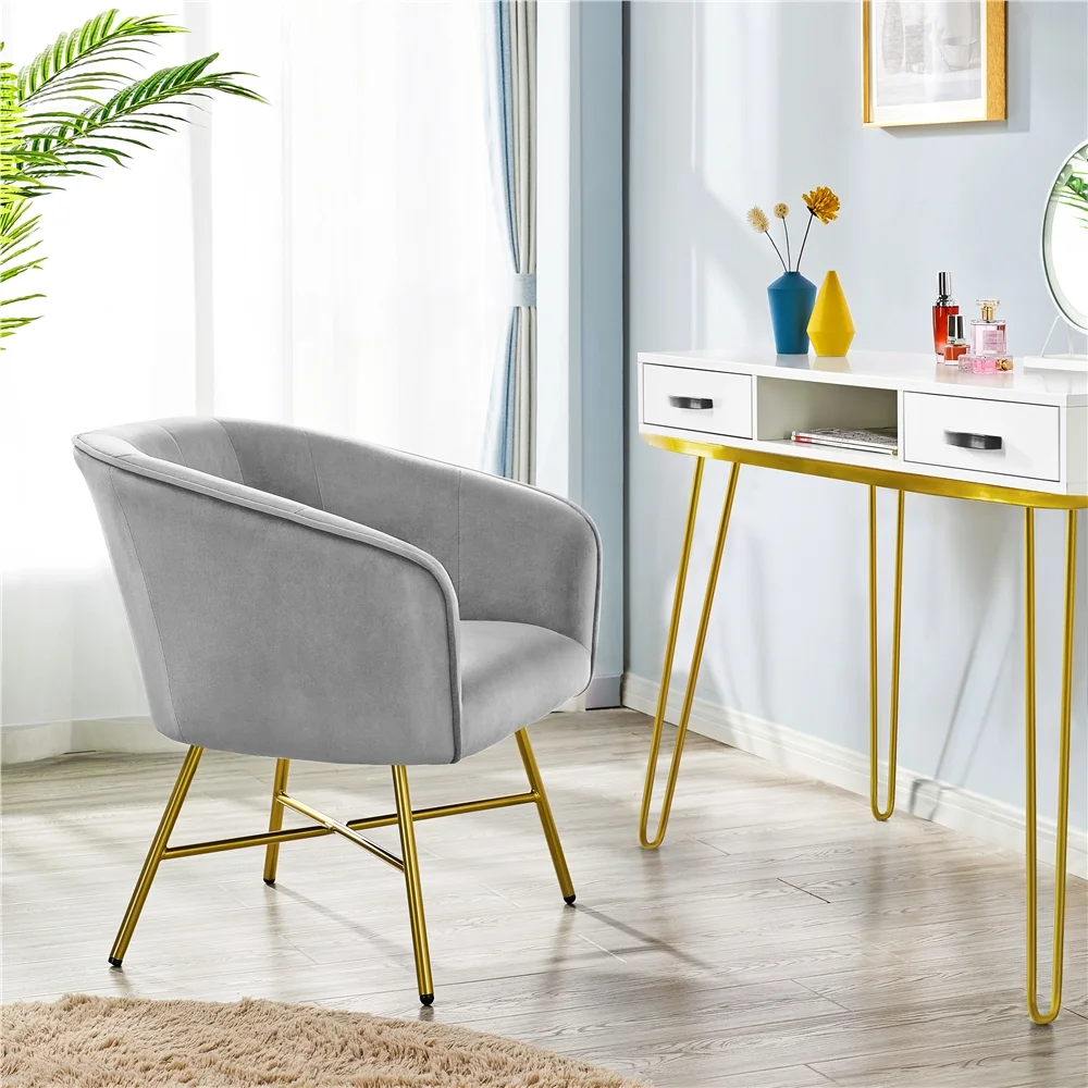 $98.04The soft fabric cover contrasts with the tapered metal legs, creating a simple but inventive tone to your home. The wooden frame and metal legs provide you strong support which could hold up to 125kg. The padded cushioned seat, back, and armrest provide you utmost comfort and strong support. The pleated pattern on the fabric backrest added an elegant feeling, this upholstered armchair could be a good addition to the living room, bedroom, dining room, guestroom, home office, and restaurant.