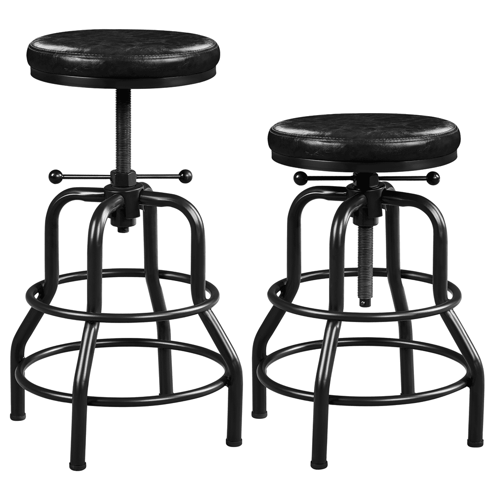 $55.89Need a rustic industrial bar stool for your kitchen island or dining room? This bar stool may be ideal for you. Crafted with water-proof faux leather and powder-coated metal, the stool is strong and long-lasting for kitchens, dining rooms, home bars, restaurants, etc. The soft foam-padded seat also brings you a comfortable seating experience. It weighs 13.2lb but can hold up to 300lb. The stool with an adjustable height ranging from 21.5-28″, serving you well from breakfasts to midnight drinks. The double-ring footrest not only provides an extra degree for holding your legs but also enhances stability and helps secure the stool legs. No installation is required!
