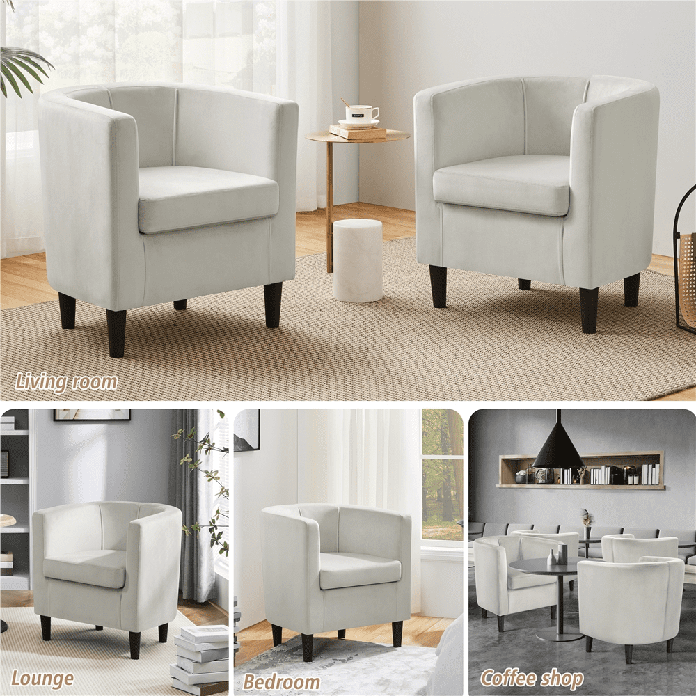 $96.32The barrel accent chair is covered by velvet fabric, giving you excellent comfort and smoothness. The barrel-shaped seat is supported by four strong legs. Skin-friendly texture and sturdy structure bring you a comfortable sitting experience. The seat measures 18.5×19.7in (WxD), a good ample spot for you to curl up, lounge in, or sit up for reading. Its barrel shape makes you surrounded comfortably, letting your back and arms completely relaxed. This upholstered accent chair is contemporary in design with its U-shaped back, channel tufted accents and tapered legs. Plush velvet fabric, in your choice of trendy colors, covers the whole seat for a chic and glamorous look. A versatile addition to any room, like the living room, bedroom, guest room, or office, bar, coffee shop and more.