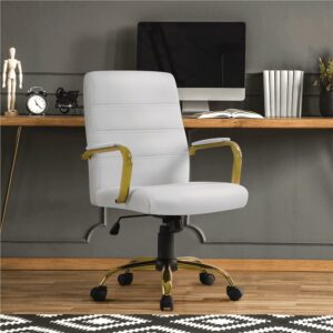 Alden Designs Mid-Back Executive Swivel Office Chair with Metal Frame and Arms, White