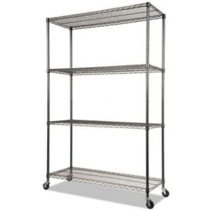 Alera Complete Wire Shelving Unit with Casters, Four-Shelf, 48″ x 18″ x 72″, Black Anthracite
