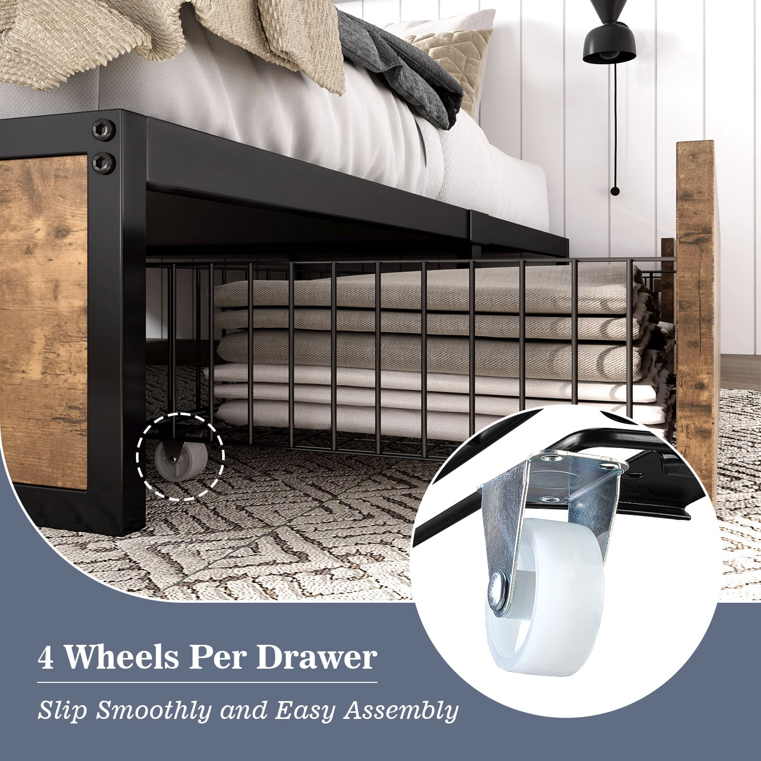 Allewie Queen Size Heavy Duty Metal Platform Bed Frame with 4 Large Storage Drawers, Strong Metal Slats, Brown