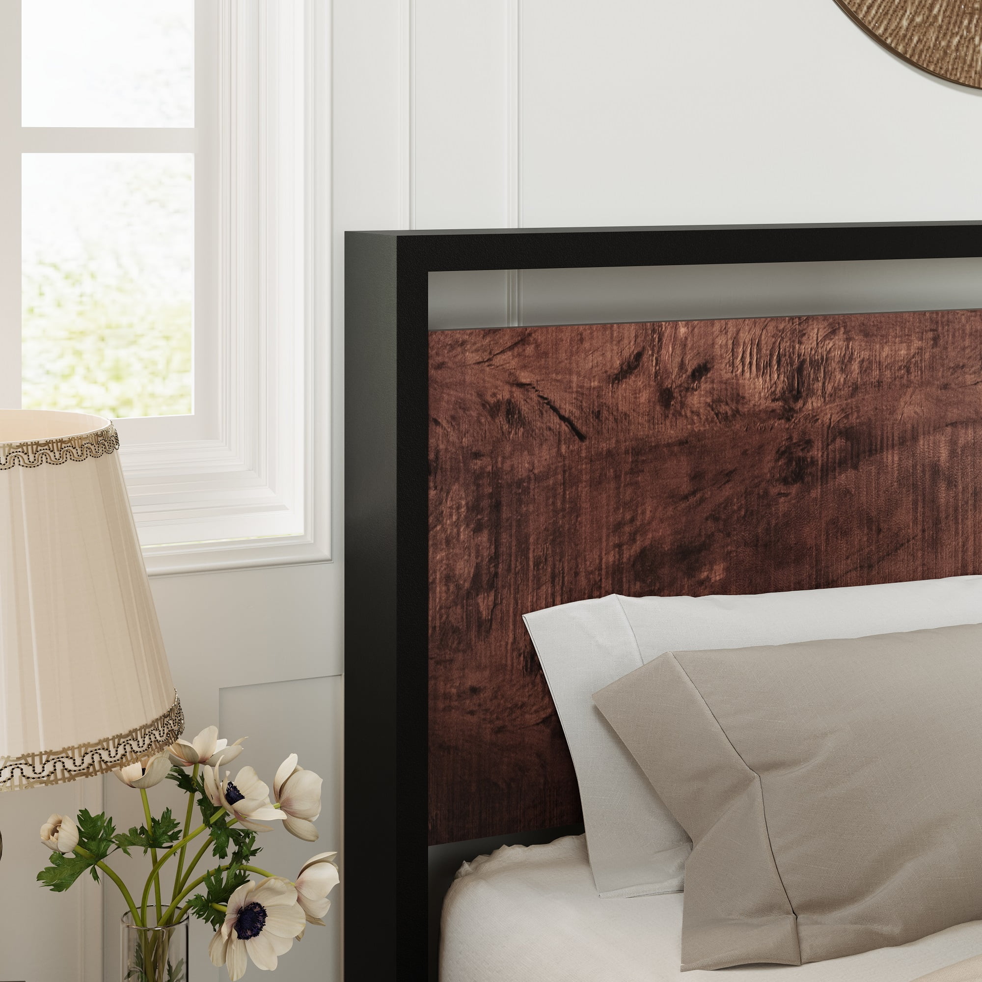 Allewie Queen Size Bed Frame, Heavy Duty Metal Platform Bed with Wooden Industrial Headboard & Footboard, No Box Spring Needed, Mahogany
