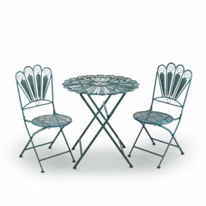 Alpine Corporation Indoor/Outdoor 3-Piece Peacock Feather Rustic Metal Bistro Set Patio Seating, Light Blue