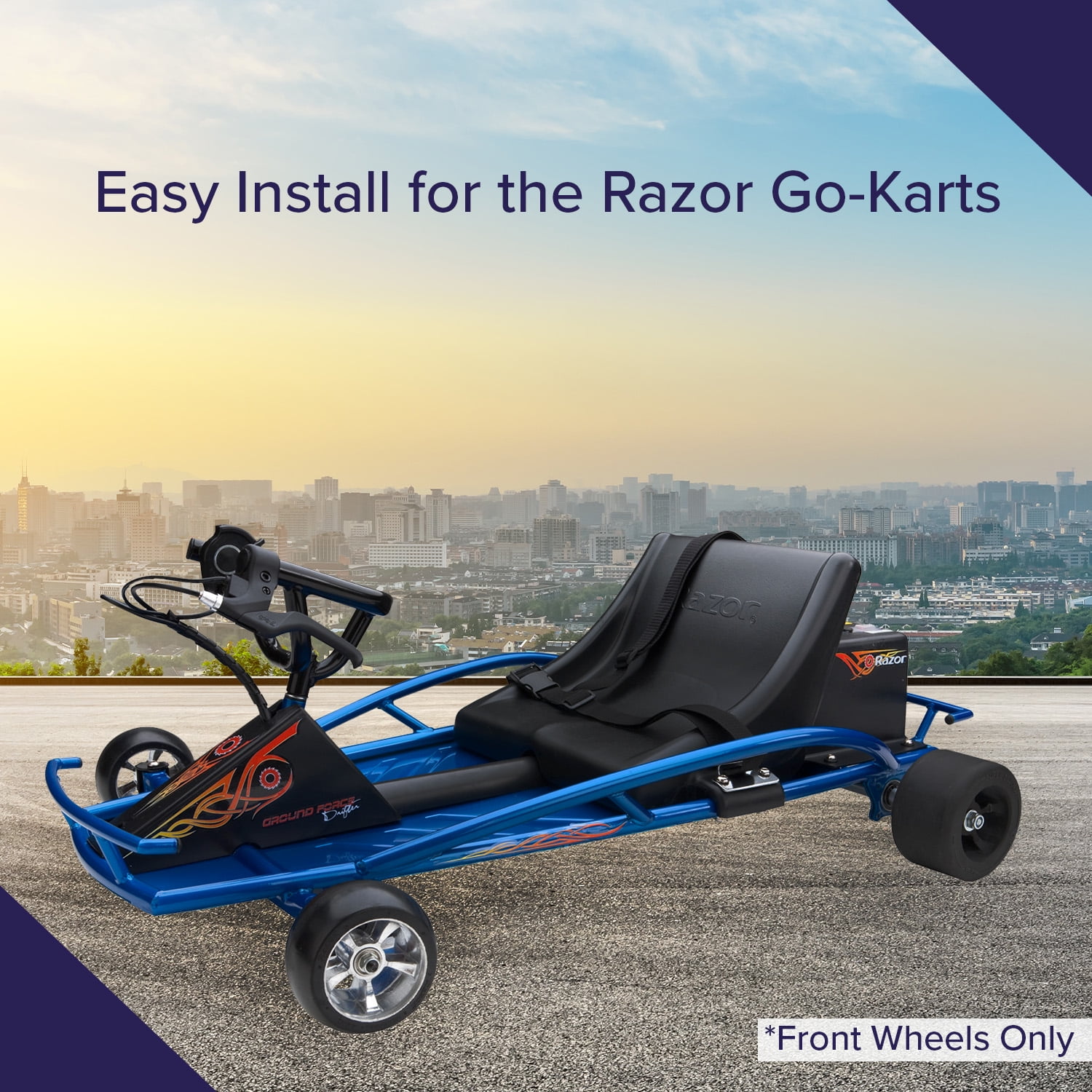 AlveyTech Front Wheels for Razor Ground Force, GFD & Drifter Fury, 4-Wheeler Go-Kart Part (Set of 2)