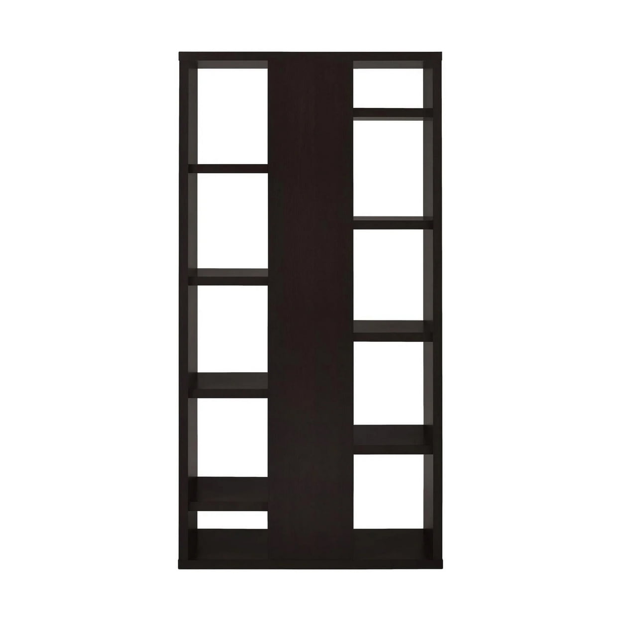 $187.40Integrated shelving blends style with substance, making this bookcase a tremendous find. Linear design elements stagger to create a fresh, fun silhouette. With a cool cappuccino finish, it blends beautifully with a number of palettes. Increase storage and display options in a contemporary room with this tasteful piece. Display books, art, decor and even potted greenery. Features: Includes: One (1) bookcase Finish: Cappuccino Materials: Paper Laminate, Hollow Board, Particle Board, Wood Type of shelves: Interlocking Modern bookcase features the look of staggered floating shelves Eight (8) staggered shelves give displays plenty of room to feature individual items MDF, particle board, and laminate construction Specifications: Product Dimensions: 70.75″H x 35″W x 11.75″D Product Weight: 78.1 lbs Number of Shelves: 9 Shelf Weight Capacity: 22 lbs Assembly Required: Yes Warranty: One (1) year limited manufacturer warranty