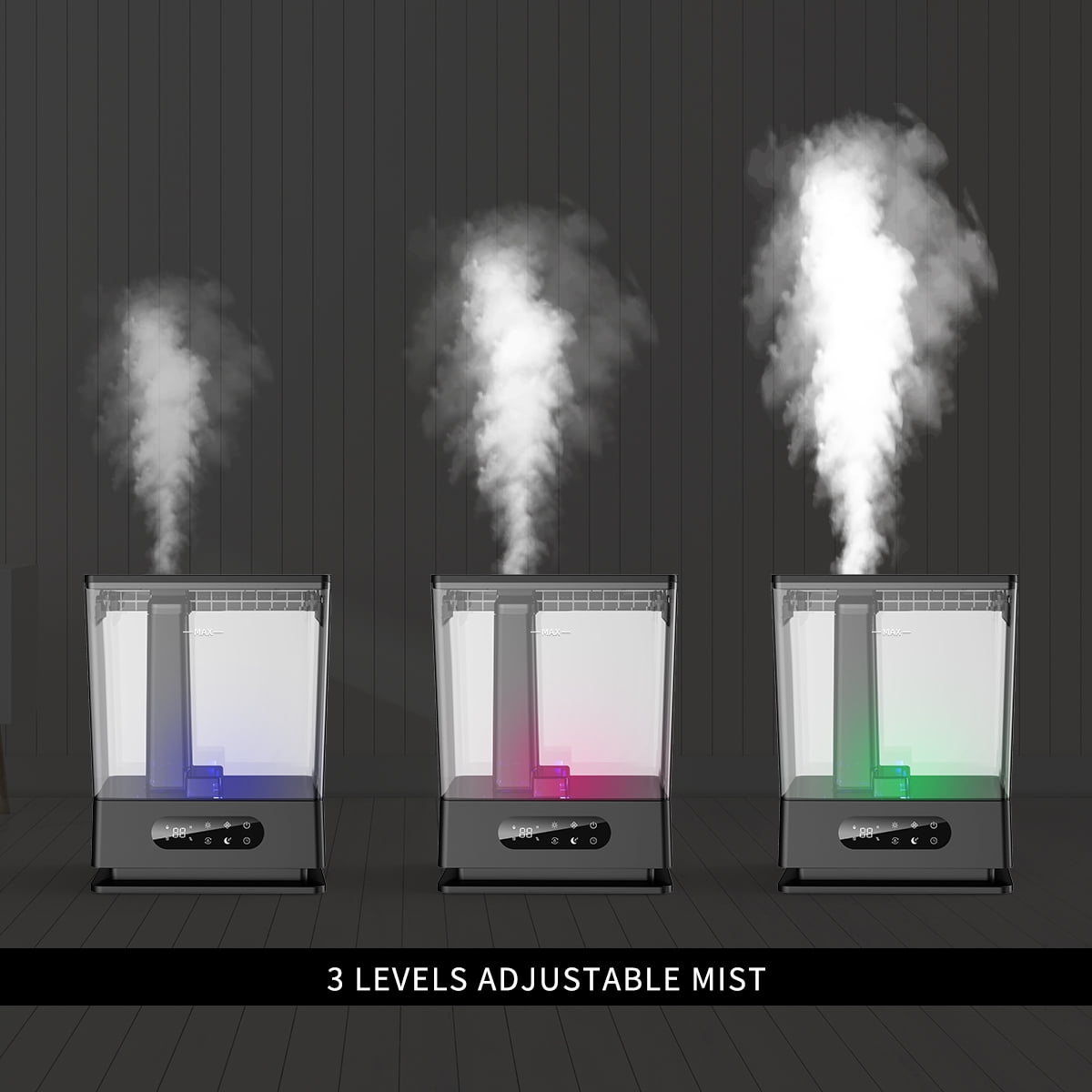 $42.99You can rarely find similar humidifiers on sale have such a large water capacity, which can support 60hour humidifying. JS06 is designed with elegant black ABS shell and in a retro square shape. The transparent water tank makes it easy to check the water level. Humidity, timer, sleep mode and mist level can all be set according to personal needs. Not just the quietness, several drops of essential oil added could improve the comfort. The humidity can be set from 55%~90%, keeping the area right to avoid being either too dry or too humid.