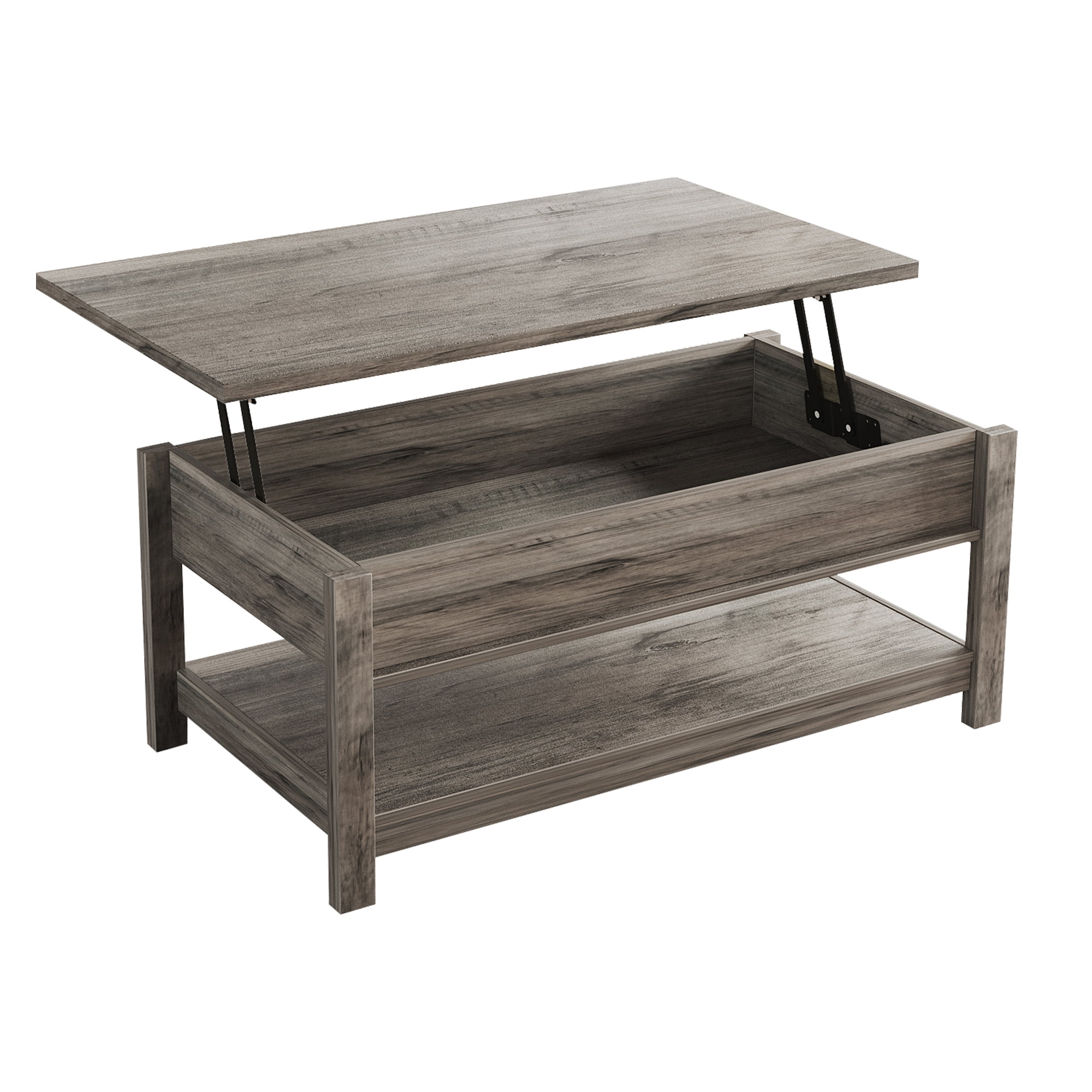 $110.93This 3 in 1 Multi-Function Coffee Table is the perfect addition to any living space. making it ideal for hosting guests or enjoying meals. The tabletop of this coffee table can be effortlessly elevated to a comfortable height to create a spacious workspace or dining surface while you’re sitting on the sofa. A hidden storage compartment beneath the top keeps your everyday items like laptop, remote controllers, game controllers handy and dirt-free. The spacious open shelf holds storage blankets, books, snacks and knick-knacks just fine.This practical table is definitely a worthwhile investment. lift top coffee table with solid construction and selected materials, this coffee table will not wobble once correctly assembled.The heavy-duty metal mechanism allows smooth and easy operation.Made with high-quality materials, this coffee table is designed to withstand regular use and provide long-lasting durability. The coffee table is easy to assemble, with detailed instructions included. You can have it up and ready to use in no time, adding convenience and practicality to your home.