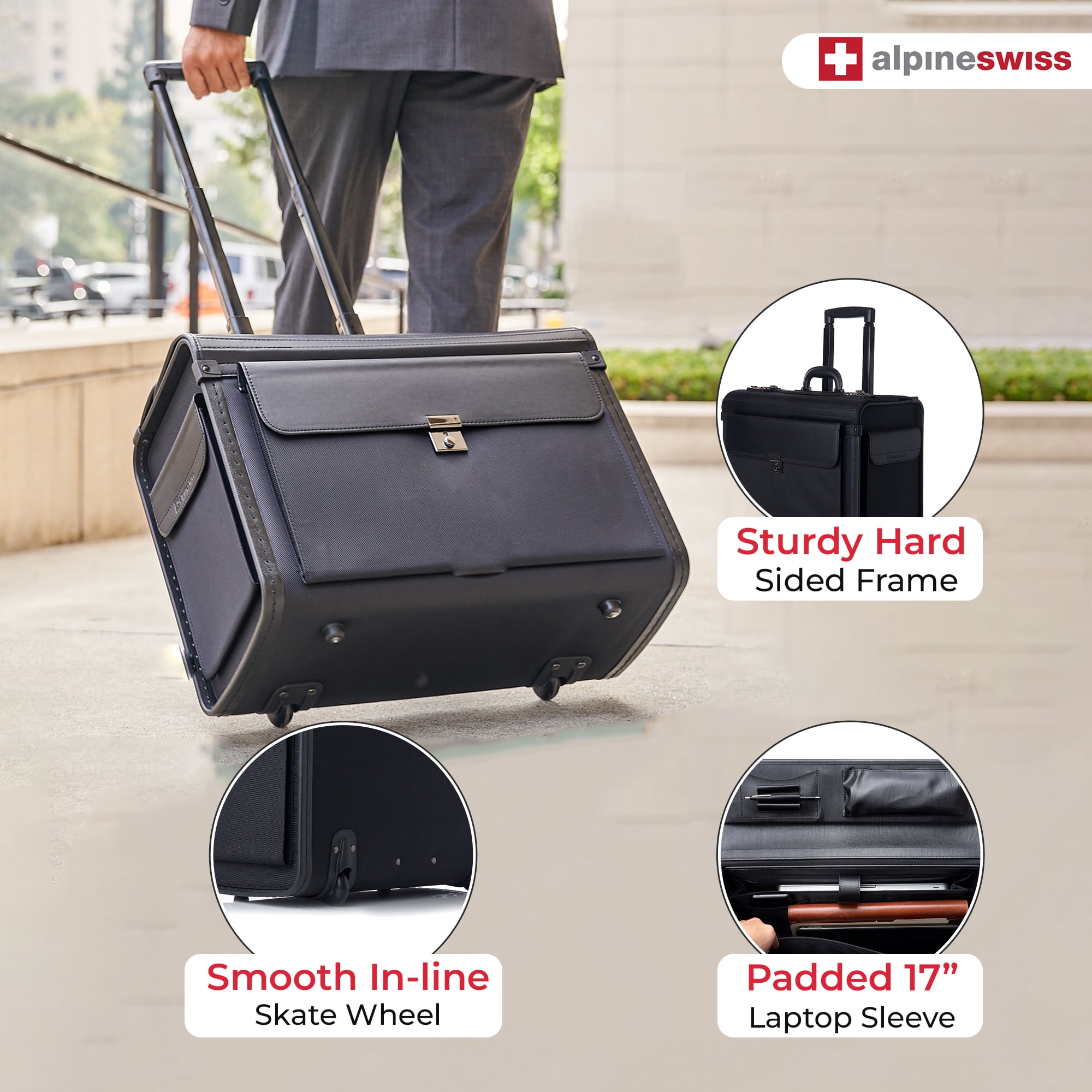 AlpineSwiss 19″ Wheeled Briefcase Rolling Case Sales Sample Pilot Lawyer Attache