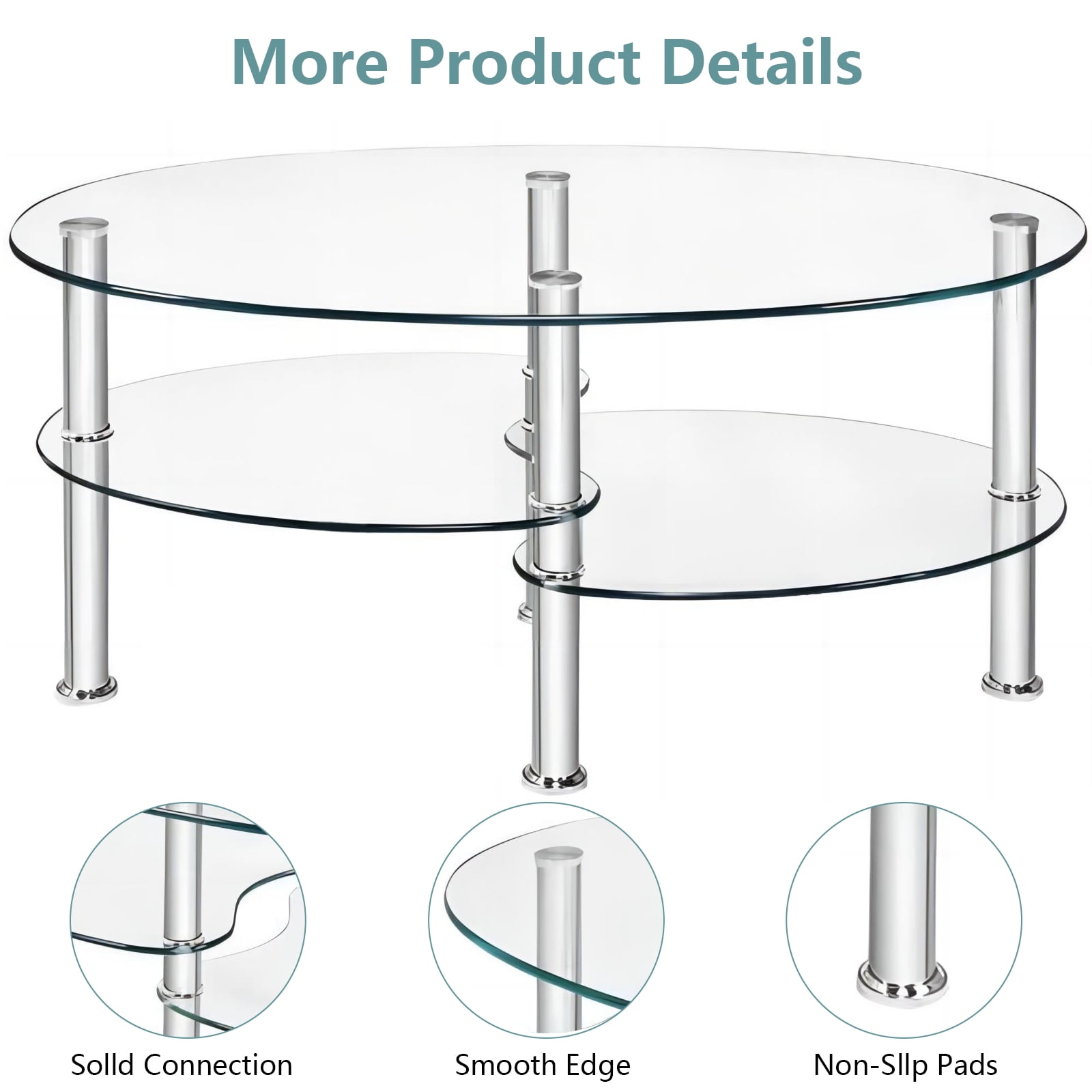 $193.47Original price was: $193.47.$64.49Current price is: $64.49.This is our elegant coffee table, which is ideal for morning coffee, leisure tea or afternoon tea. Made of tempered glass, this coffee table is strong and durable and Looks simple and stylish. The smooth and non-angular design of this table provides users more reliable and safe experience. It features 2 bottom shelves, providing more storage space for magazines, books, remote controls or other decorations. The clean and bright design combined with the harmonious proportions will create a calm and relaxing ambience, perfect to unwind your mind and body from a hard day at work. Do not hesitate to add it to your cart! Feature Strong and durable tempered glass, providing years of use Smooth and non-angular oval design for more reliable and safe use experience Features 2 bottom shelves, offering more storage space Clean, bright and elegant style Easy to clean and assemble Perfect for living room Assembly required Specification Material:Tempered Glass+ Metal Overall dimension:35.5”x 20” x18” (LxWxH) Dimension of the two bottom shelf:16.5”Lx 16”W Weight capacity of the top:90Lbs Weight capacity of the bottom shelf:45Lbs Package includes:1 x Coffee Table Strong and durable tempered glass, providing years of use Smooth and non-angular oval design for more reliable and safe use experience Features 2 bottom shelves, offering more storage space Clean, bright and elegant style Perfect for living room