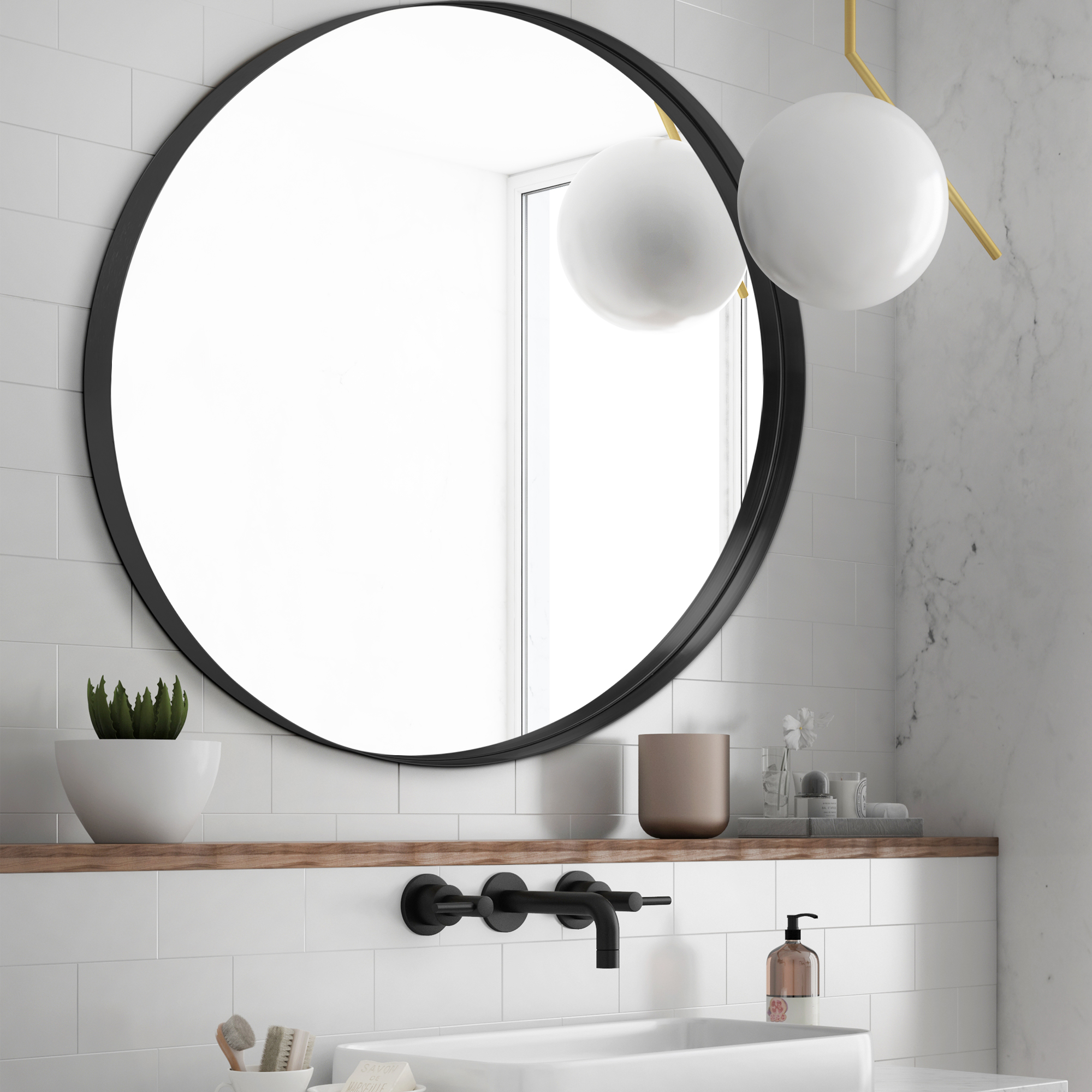 $103.20Neutype Wall-Mounted Mirror will offer you a simple & fast way to hang it up.large round mirror are a blend of whimsy and elegance, and they look best in modern, contemporary rooms. If you’re using a mirror as art, round is the way to go – particularly when you’re decorating a room with geometric shapes and sharp angles. The wall mirror is made of high quality HD glass with no distortion and the brushed frame of circle mirror is premium anti-rust aluminum alloy. The glass of the wall mirror is protected by the surrounding frame construction. We have added a shatter-proof membrane to prevent the mirror from being broken and hurting people. And we use multiple packing materials to pack the round mirror. This mirror works well as a bathroom vanity or simply as an accent mirror for your living space. One-piece mirror, easy to install with pre-installed hooks, can be hung horizontally or vertically, or just spice up your dresser or a console table.